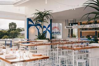 Mexicali Bulimba channels the lively ambiance of Nobles Beach's party institution all the way to Brisbane's suburban landscape. Inspired by the vibrant city of Mexicali, the rooftop restaurant / bar combines urban industrial elements with the colourful zest of Mexican culture. Drawing from the Hacienda vernacular, Mexicali expresses colour and tactility. Locally manufactured light fittings throw soft lighting across the variety surfaces; stucco, concrete, cement render, hand made terracotta tiles and commissioned touch points by Australian artists. Custom designed communal tables surrounded by booth seating bring a balance of a place to have a dance, share a plate of tacos and throw down some margaritas. Surrounded by lush plantings of the exterior Mexicali overlooks the main strip in Bulimia, Oxford Street and Bulimia Memorial Park bringing a vibrant offering to the suburbs.